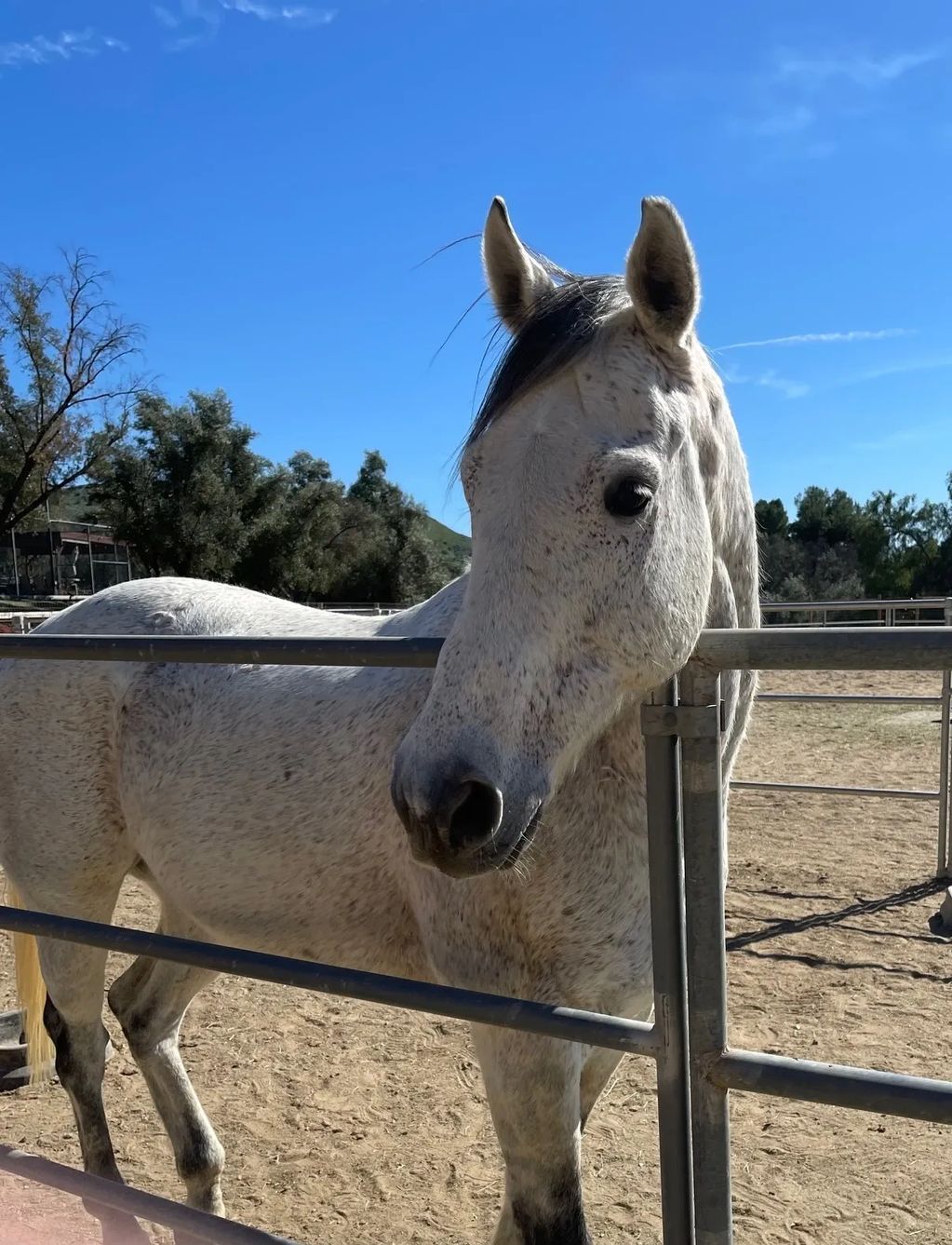 Roadie was the senior gentleman of the ranch and the impetus to establish it. He began his life on the Quarter Horse racetrack. Sandbar Sanctuary's founder Cecilia met him in Arizona many years ago and fell in love, but sadly he was not for sale. Amazingly, when he did become available several years later the owners remembered Cecilia’s love for this handsome gray gelding & gave her a call.